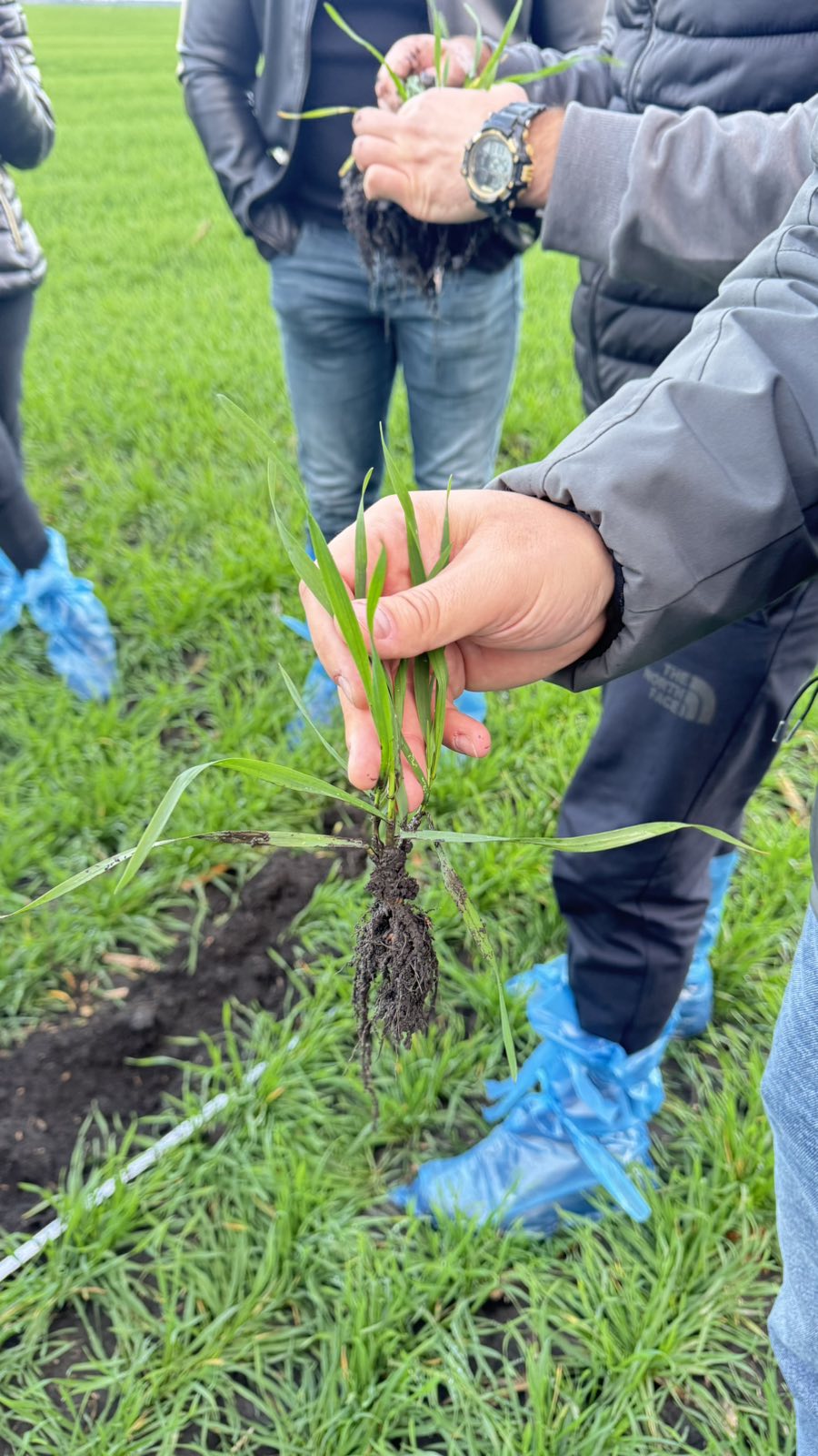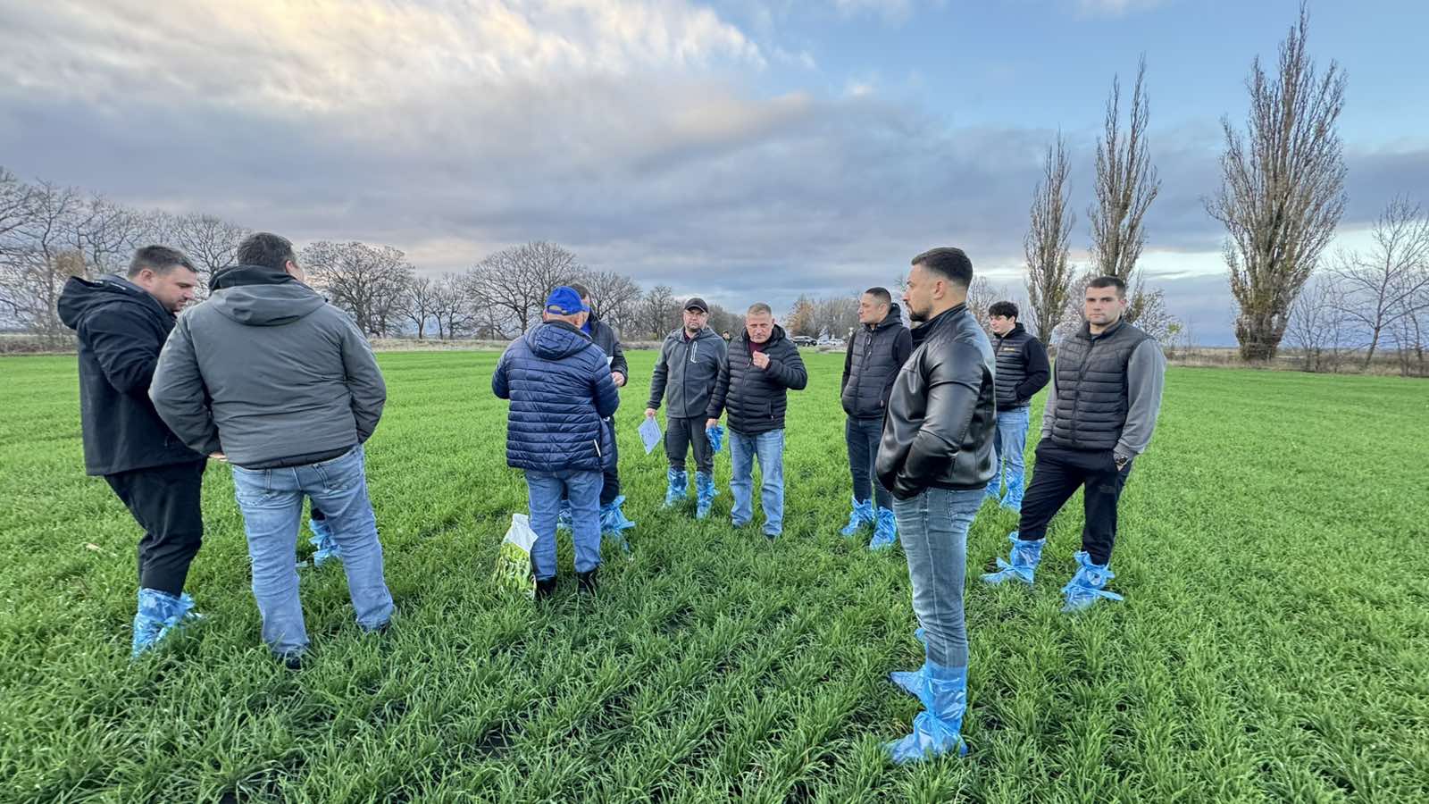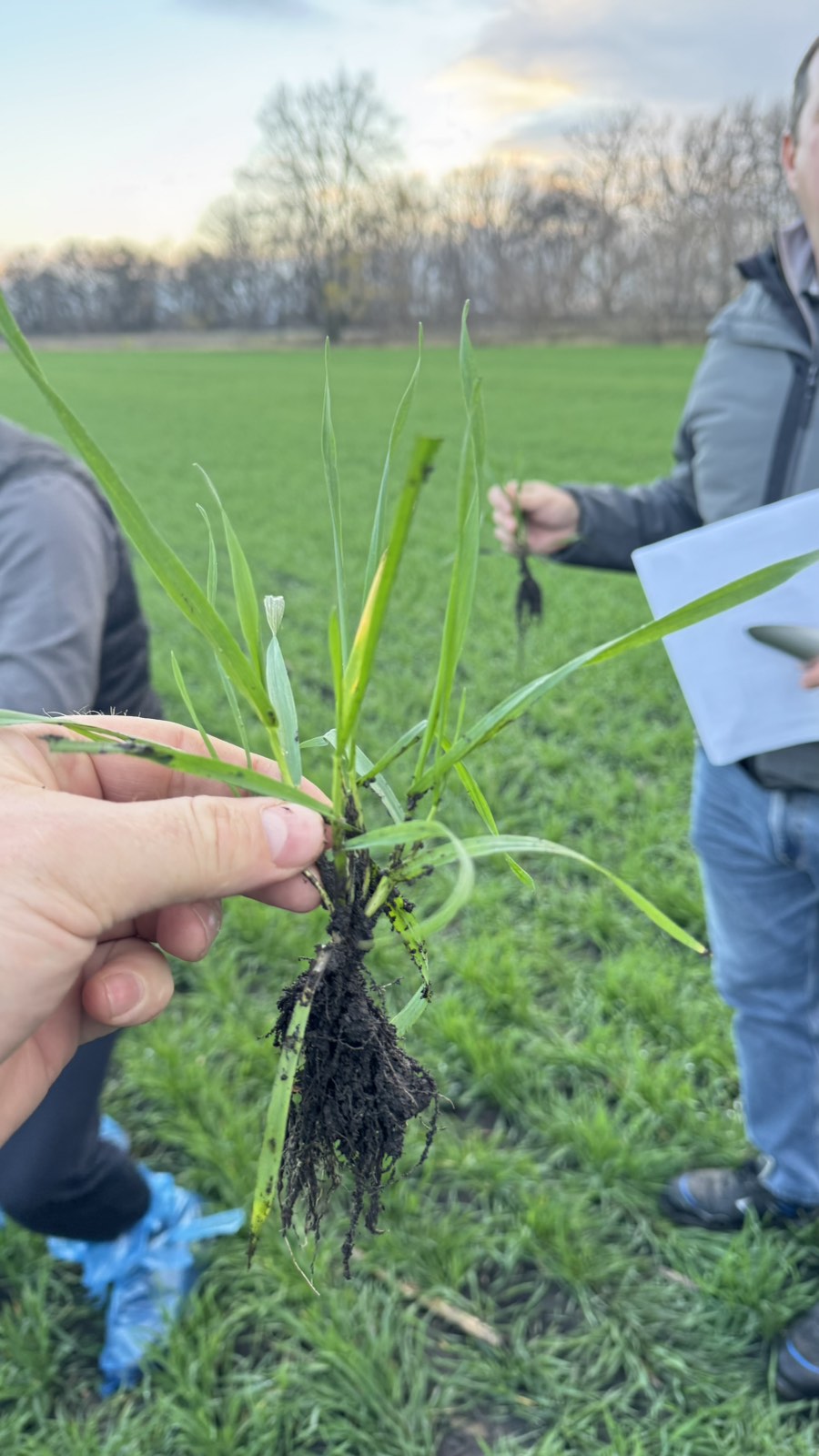 Наприкінці продуктивного дня відбувся виїзд для практичного огляду стану сортів пшениці в полі. За посіву 3х млн. насіннин в оптимальний строк кінець вересня сорт БАРБА має фазу розвитка BBCH22, зформував більше 10 млн пагонів передзимівлею /га, що відповідає 3-4 пагонів на рослину. Рослини знаходяться в оптимальному стані перед зимовим періодом спокою. Відібрані зразки для вивчення рослин на потенційне захворювання листковими хворобами.