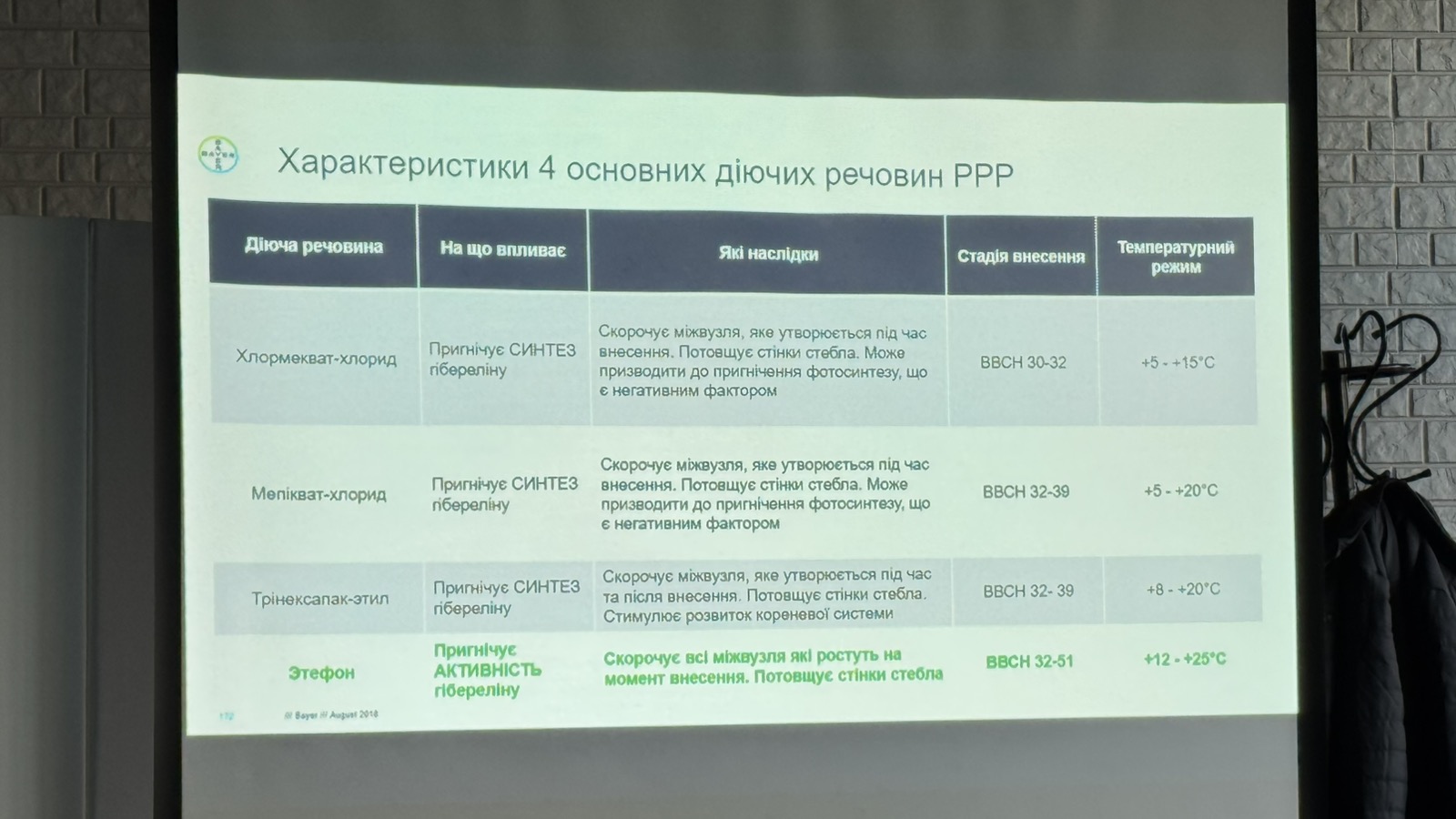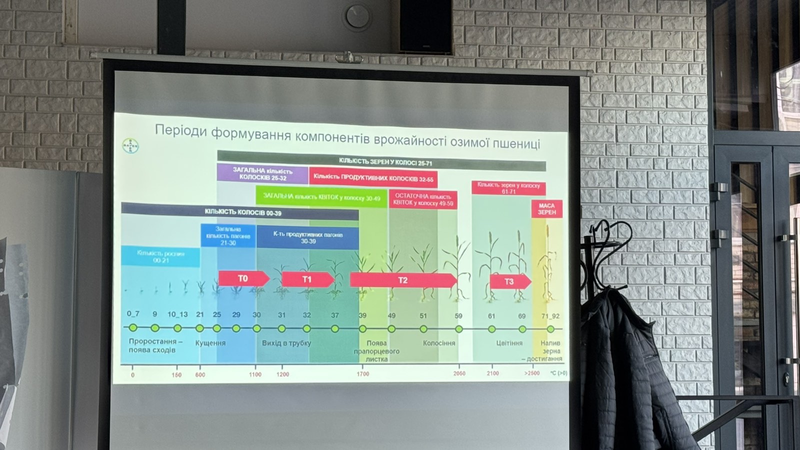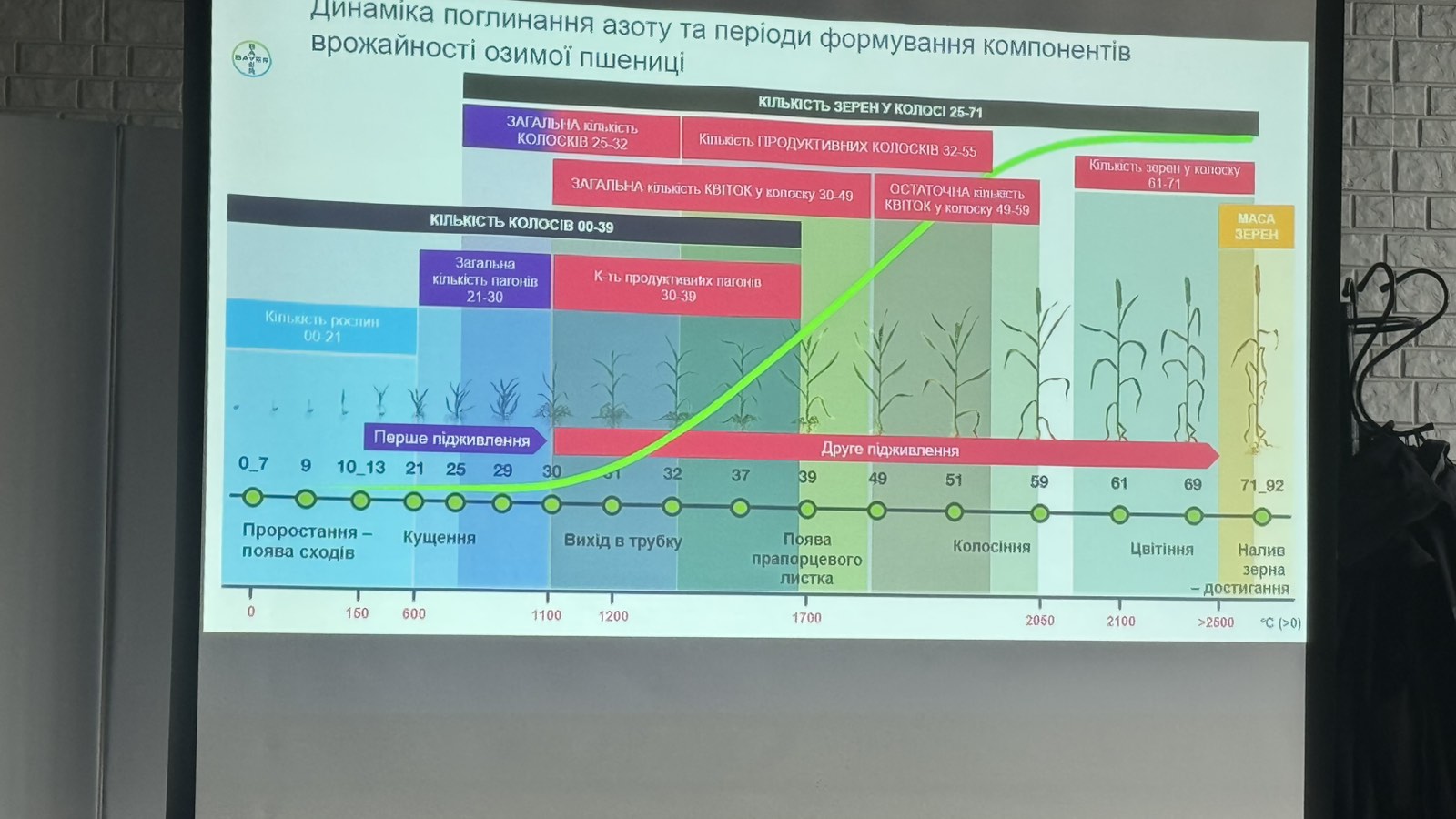 Теоретична частина тренінгу від спеціалістів БАЙЄР висвітлювала основні біологічні особливості пшениці, стадії розвитку та росту, вплив технологічних і погодно-кліматичних факторів на формування продуктивності. Попередники, підготовка грунту, протруєння насіння, строки посіву, норми, захист, удобрення по фазам і планування підживлення, хвороби ,препарати і перспективи отримання високої продуктивності в актуальних умовах - все було презентовано, задавалися питання від учасників семінару і отримувалися змістовні практичні відповіді від спеціалістів.